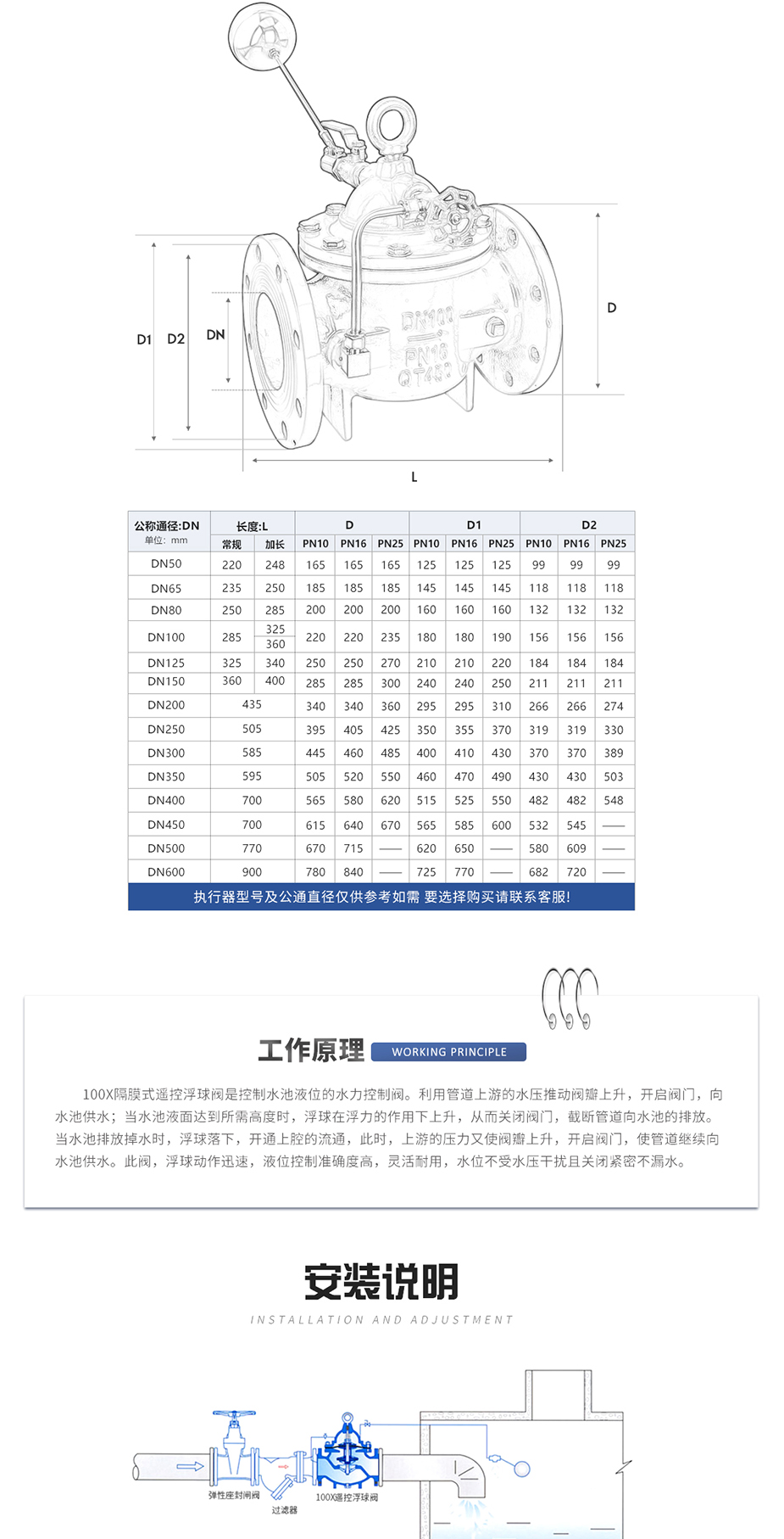 4、把浮球閥裝置在管道的水平方向或筆直方向。